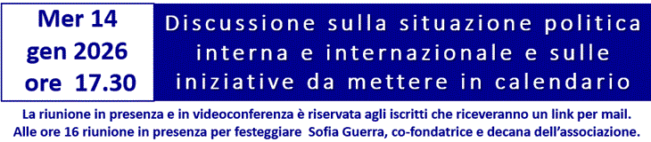 ID riunione: 862 1767 0441 - Passcode: 654215
