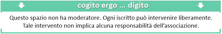 Ho l'impressione, come se i caratteri di questa sezione del SITO siano stati leggermente ridotti, almeno rispetto a quelli usati per l' Avvertenza in epigrafe comune, dopo il Cogito ergo ... digito, e prima degli interventi degli Iscritti - non moderati! - che deve essere stata aggiunta da qualche tempo. Non me la ricordavo fin dall'inizio.